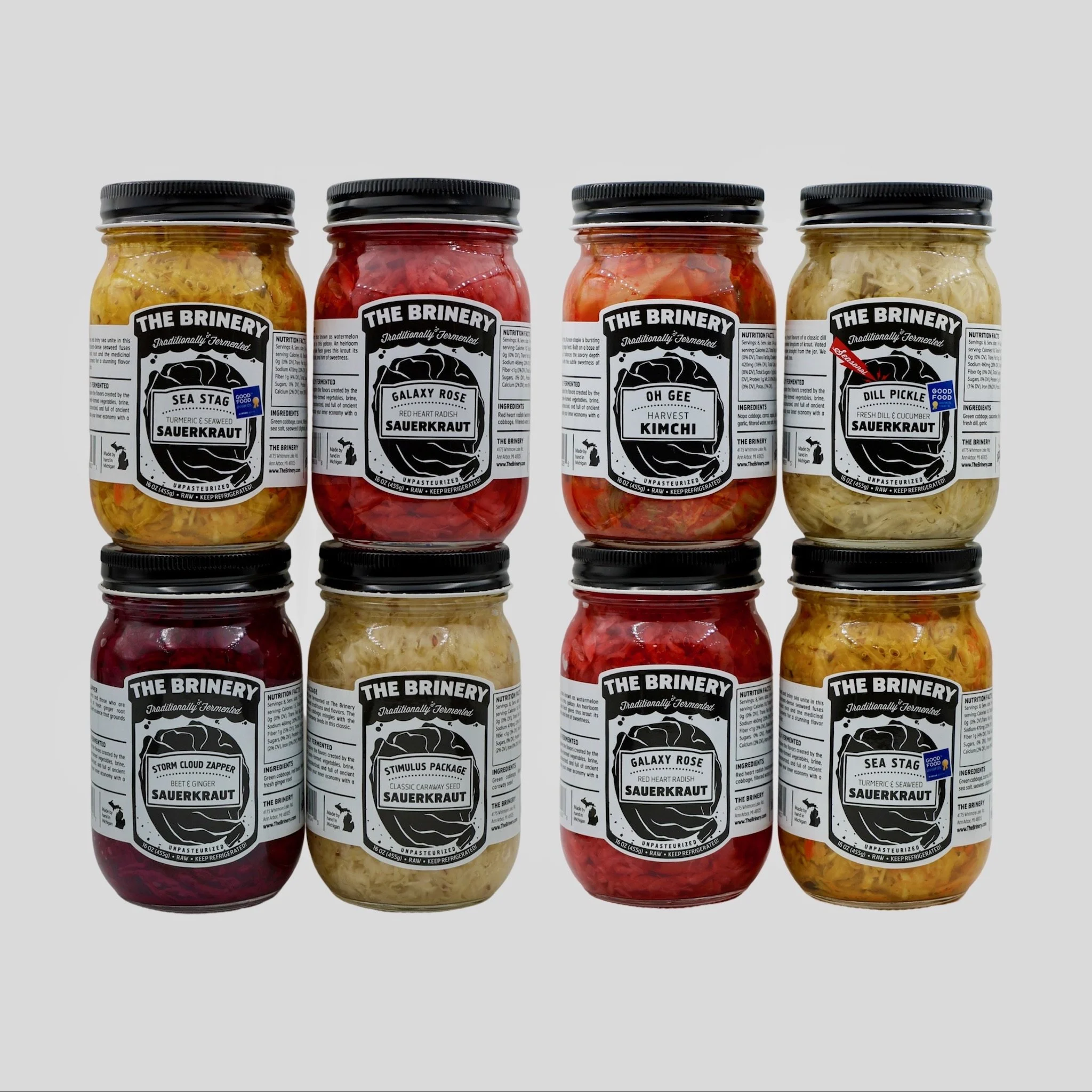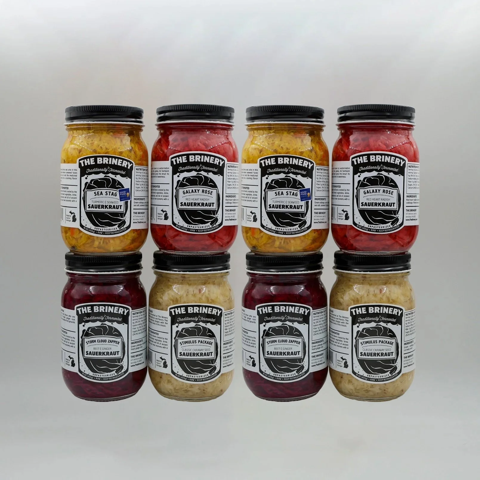Get one each of our core line of sauerkrauts: Fair 'N' By, Stimulus Package, Sea Stag and Storm Cloud Zapper
